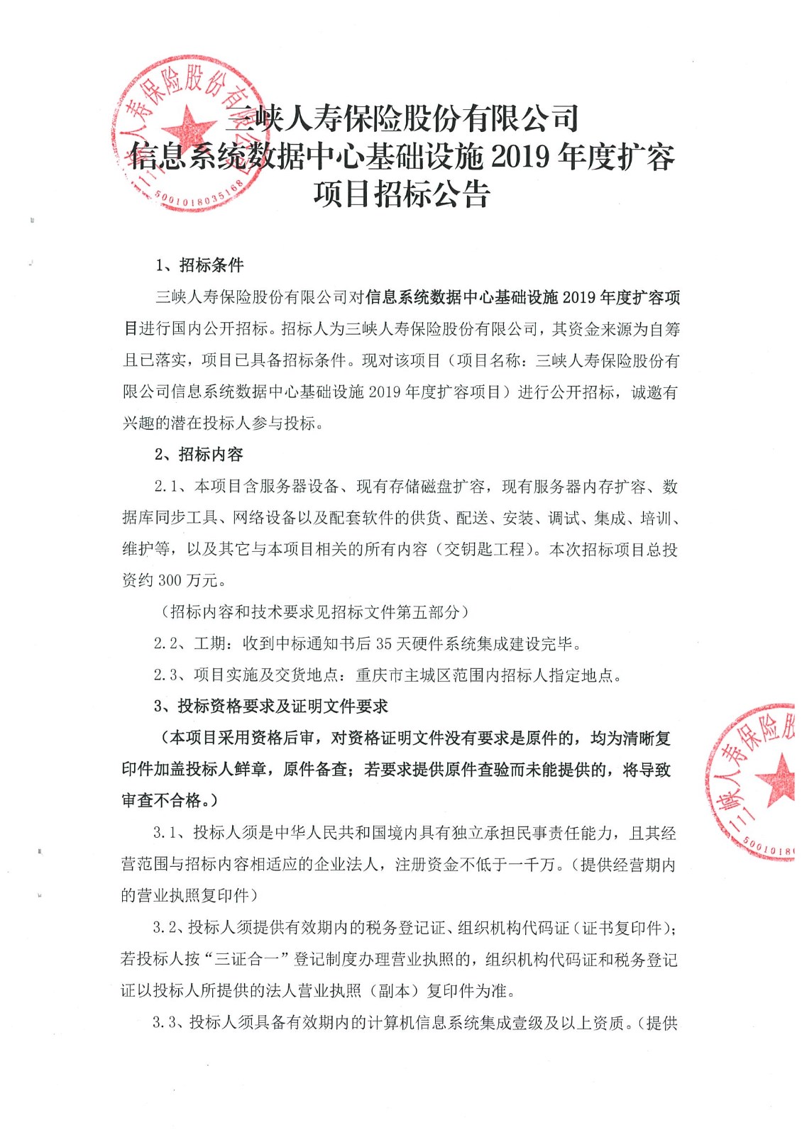 幸运飞行艇官网开奖查询结果信息系统数据中心基础设施2019年度扩容项目招标公告